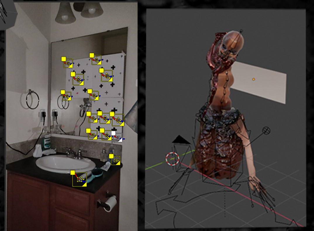 As for the goal of this project, all I wanted to do was a scene where a monster crawled out of my bathroom mirror, and I think that goal was achieved.